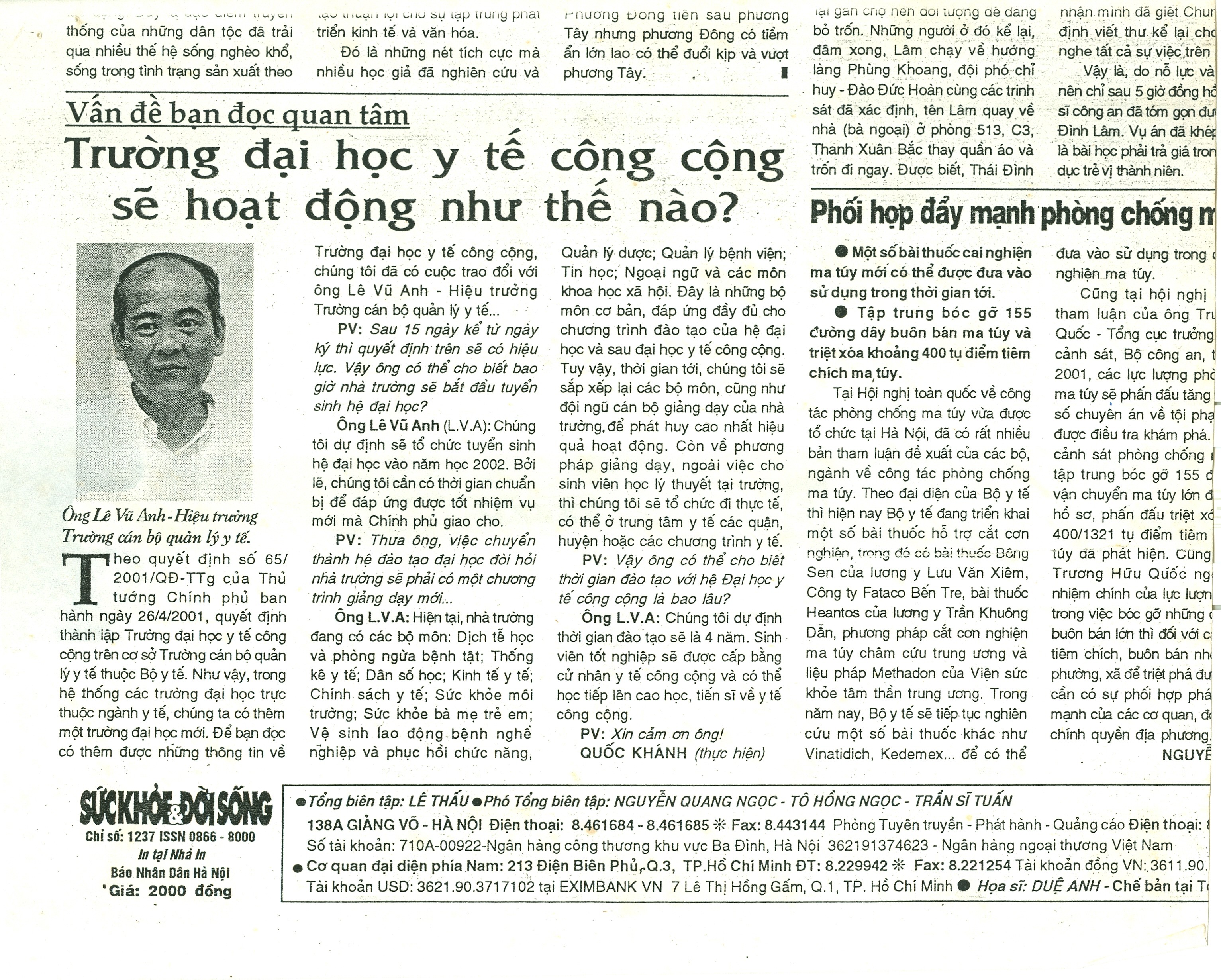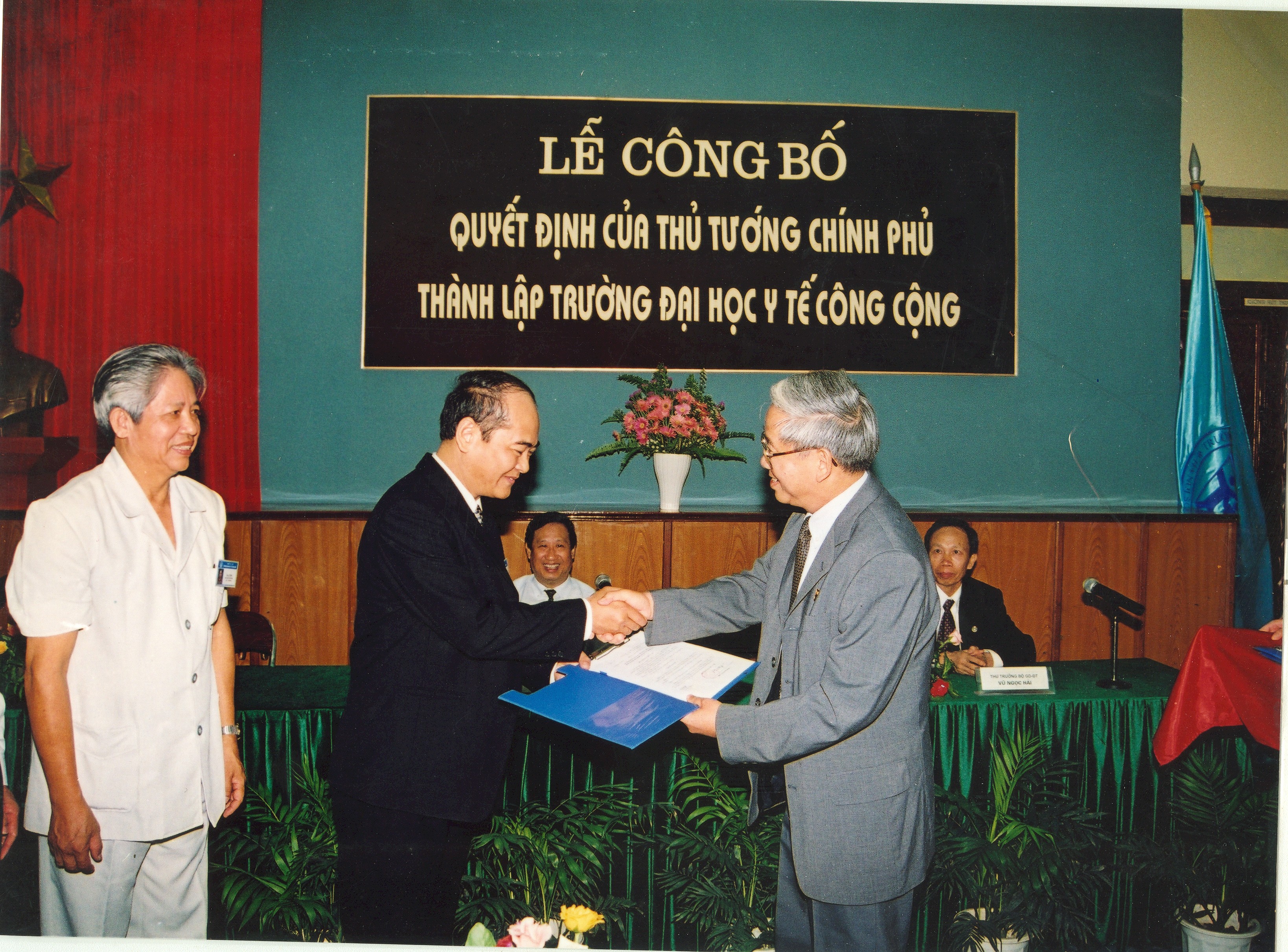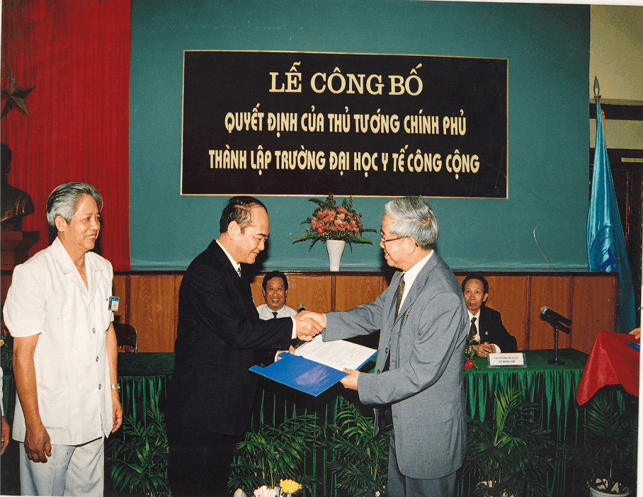 Ngày 26/4/2001 Trường Đại học Y tế công cộng được thành lập theo QĐ số 65/2001/QĐ-TTg của Thủ tướng Chính phủ (trên cơ sở Trường Cán bộ Quản lý Y tế trực thuộc Bộ Y tế), trở thành Trường đại học Y tế công cộng đầu tiên và duy nhất của Việt Nam với tên tiếng Anh là Hanoi School of Public Health